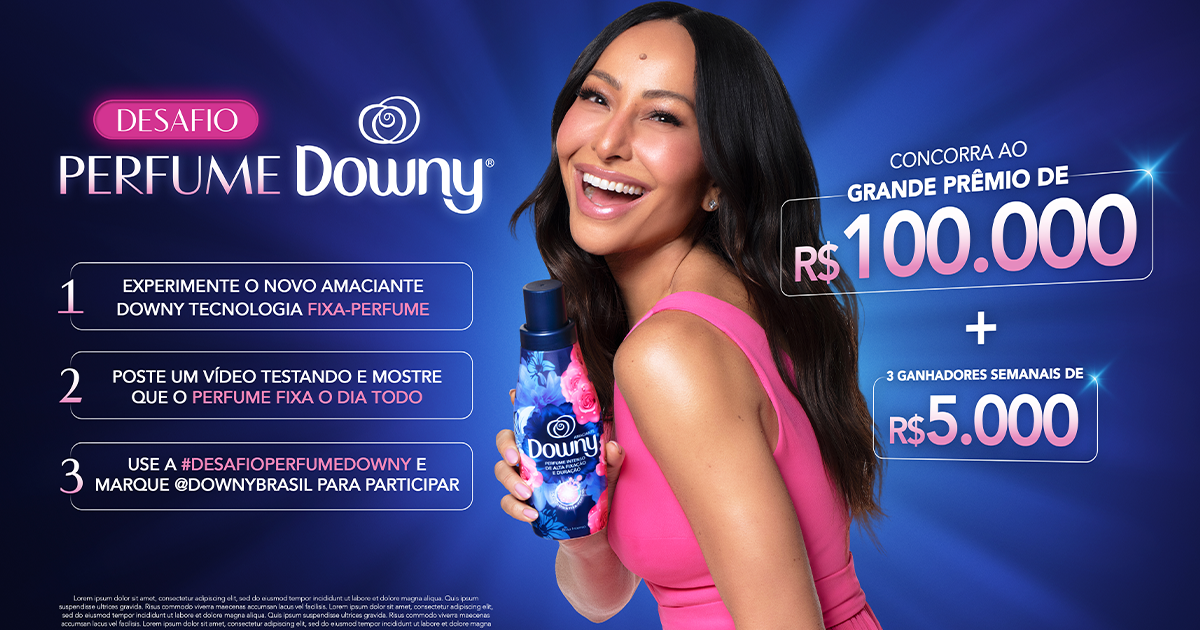 Por conteúdo, entende-se a elaboração de um vídeo criativo, com duração mínima de 20 segundos e máxima de 1 minuto, que mostre uma peça lavada com Downy sendo inserida na rotina do consumidor, do início ao fim, sem o uso de outras fragrâncias ou perfumes, evidenciando que o uso de Downy faz com que a presença do consumidor seja reconhecida pelas fragrâncias do produto. Ao realizar o vídeo criativo com o review e uso dos produtos, o participante deve destacar a fixação e o perfume característicos de Downy, sendo obrigatória a presença de pelo menos um produto Downy no vídeo. A forma criativa, o momento e a maneira como isso acontece ficam a livre escolha de cada participante.